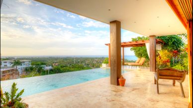 Translating to "Sun and Sea" and perched on the mountains above Las Terrenas, this luxurious mountain villa offers unparalleled views of the sparkling town and crystal-clear water below. With its modern design that harmonizes seamlessly with the surrounding lush tropical greenery, the outdoor terraces are perfect for lounging or entertaining. The villa comes perfectly complete with an infinity pool that appears to merge with the horizon, while inside, the open-concept living spaces are elegant and airy, with high-end finishes and panoramic views at every turn. Whether you're sipping a cocktail on the deck as the sun sets or enjoying the view from the pool, this villa is the ultimate blend of serene escape and comfortable living!